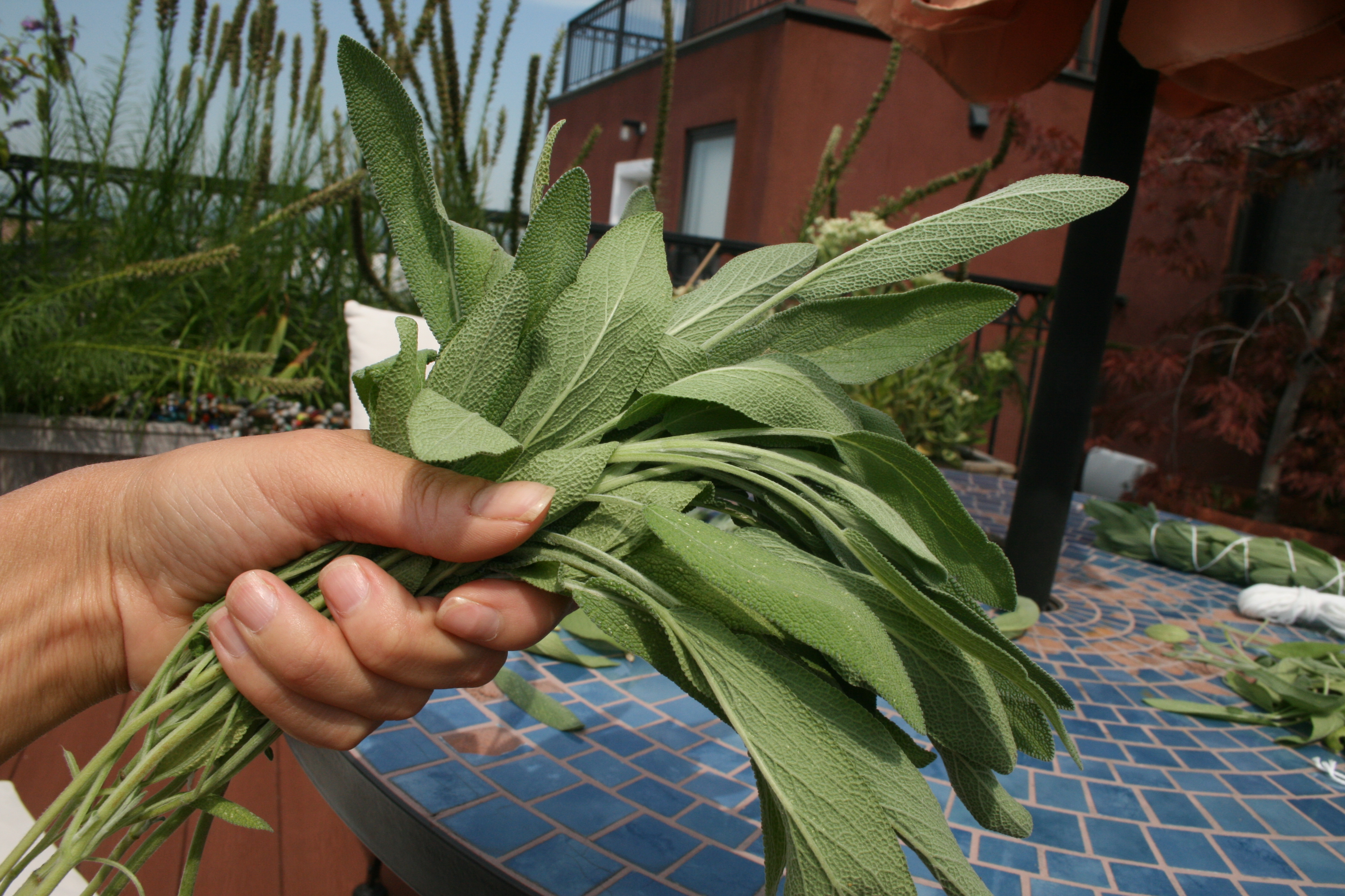 Sage does really well in my garden — I mean REALLY well. As a result, a dozen Thanksgivings could not employ as much sage as I’ve grown. Even if I dry all of it for use in cooking, I don’t think I have enough foodie friends to give it to. So I decided to make some sage smudges — sticks of the dried herb that smell nice when burned.