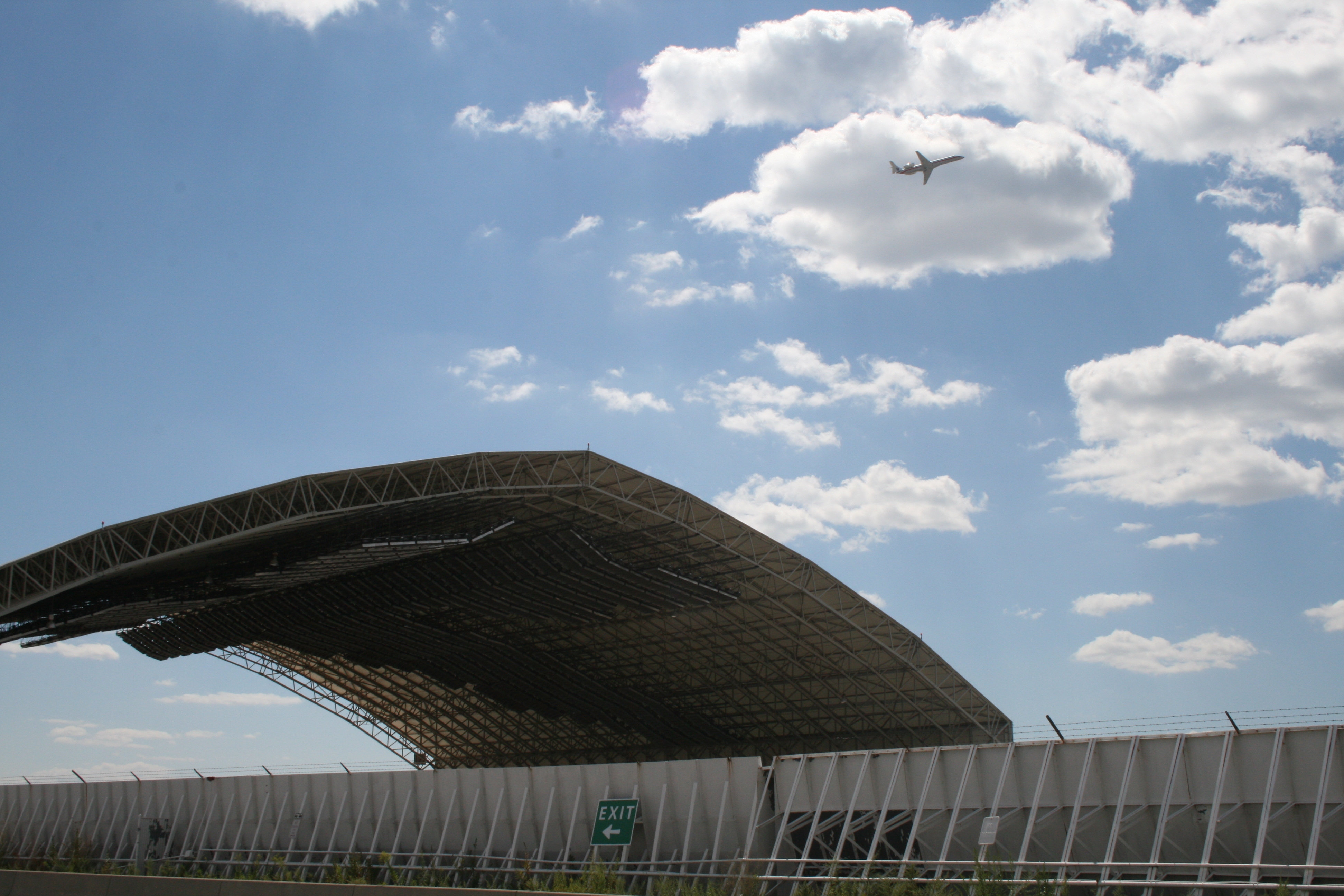 So today I made JFK airport my destination. In particular, the areas that most people don’t see. Abandoned hangars, empty outbuildings and crumbling warehouses. And of course, the most famous of JFK’s abandoned structures, the Eero Saarinen TWA terminal. It happened to be a gorgeous day, too. (In retrospect, the day before the 11th anniversary of 9/11 probably wasn’t the smartest time to be creeping around an airport taking pictures of stuff, but no one stopped me.)