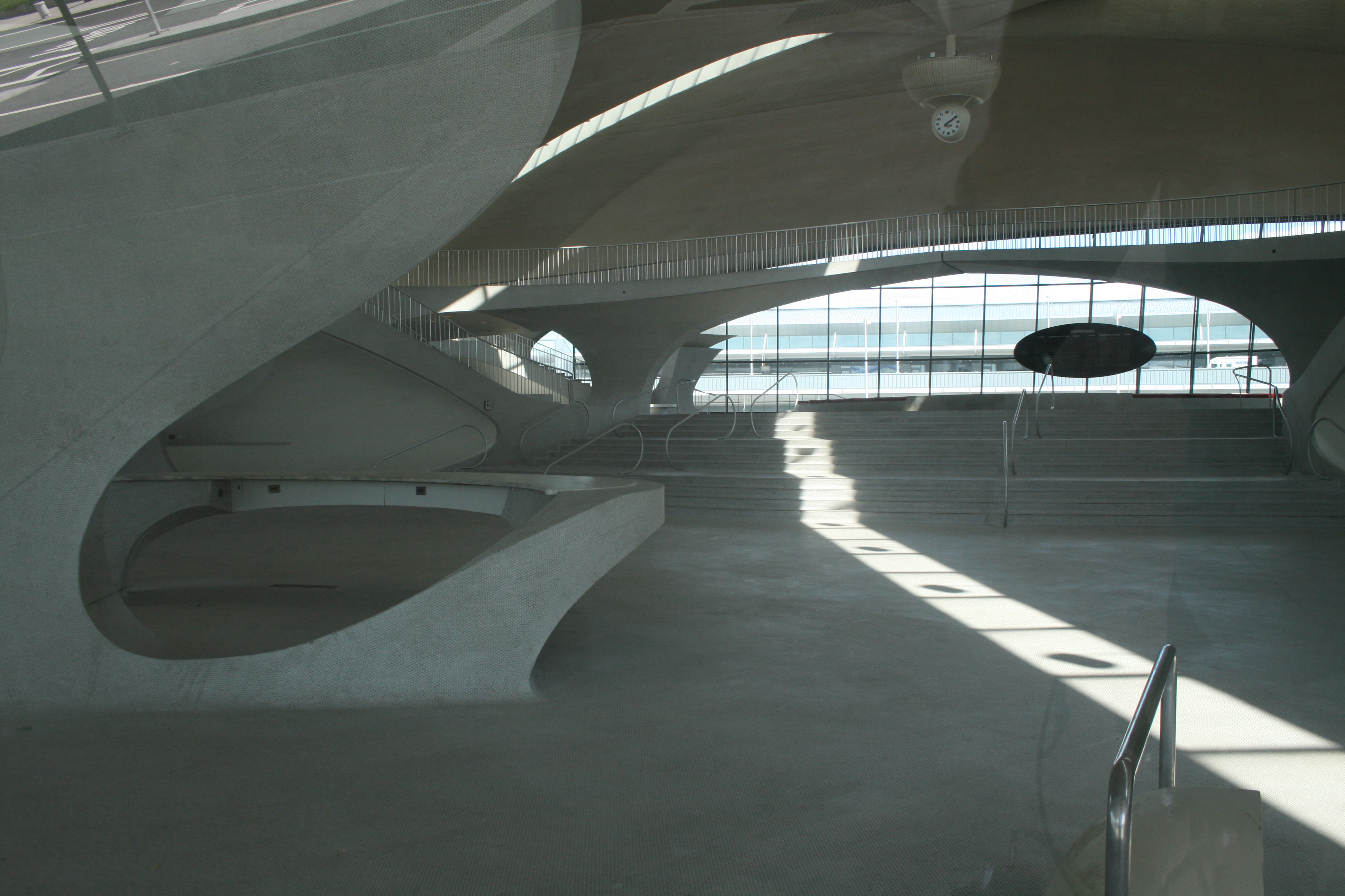 My dad worked for TWA back in the day and we frequently flew from that terminal. At it’s peak, TWA also used the current Jet Blue terminal (the old National Airlines Sundrome). They were connected by a covered walkway. TWA used the Jet Blue one for most domestic flights while the original building mostly international travel. In those days 747’s and :L-1011’s. filled the gates. The Saarinen building was filled with red carpeting in keeping with TWA colors in the waiting areas and the long tubes that fed to the various departure and arrival gates. Customs were downstairs. The Paris Cafe (actually a diner type eatery) was on the upper level as the Ambassador Club. The Domestic Terminal was much larger, better laid out and offered a larger selection of food choices. If mostly after security which in those days consisted of showing your boarding pass. Unlike today, where one pays inflated prices to purchase questionable foods, TWA billed themselves as offering “The Finest food in Flight” and they really delivered on that (and it was all included)!.